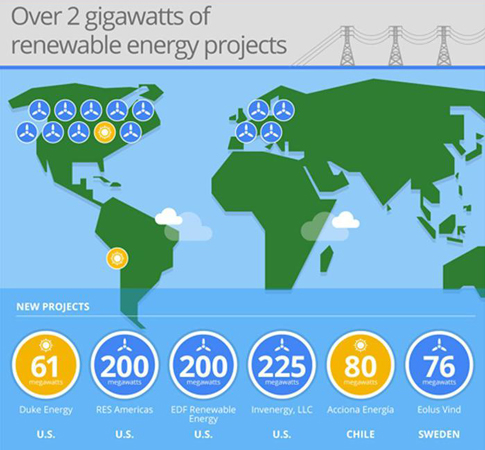 Quelli che il colosso di internet ha annunciato sono contratti a lungo termine con una durata tra i 10 e 20 anni e, precisa l'azienda, "garantiscono la sostenibilità finanziaria e le dimensioni necessarie per costruire queste strutture, rendendo così possibile alimentare la rete delle zone coinvolte con energie rinnovabili".